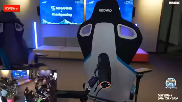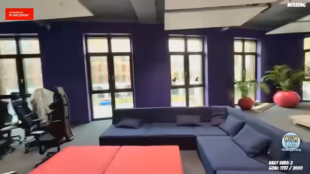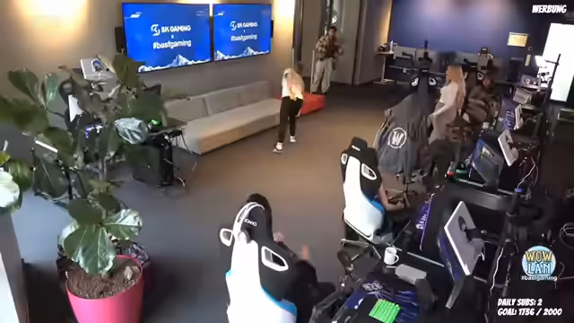 01:14:45Der Streamer beginnt mit einer Besichtigung der Räumlichkeiten im SK Center, das gemeinsam mit BASF Gaming genutzt wird. Er zeigt verschiedene Einrichtungen wie ein Fitnessstudio, eine Showküche und mehrere Zockerräume. Dabei wird er auf technische Geräte wie einen Recaro-Gaming-Stuhl und eine Kaffeemaschine eingangs erwähnt, und der Fokus liegt auf der Vorstellung der Location und der allgemeinen Einrichtung, die eine professionelle und zugleich gemütliche Atmosphäre für die LAN-Party bietet.