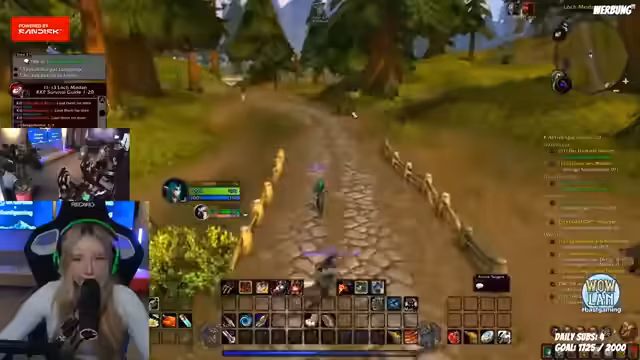 03:47:01Der Streamer fliegt mit seiner Gruppe nach Loch Modan, um dort neue Quests zu erledigen. Er erklärt seinem Chat die Funktion des Addons 'Rested XP', das es ermöglicht, Quests zu bündeln und effizienter zu erledigen. Er erwähnt auch sein Jagdtier und wie er dieses im Kampf heilen kann. Der Streamer ist bemüht, seine Benutzeroberfläche optimal einzurichten, und gibt sich Mühe, trotz der vielen Einstellungen den Überblick zu behalten und gleichzeitig mit seinem Publikum zu interagieren.