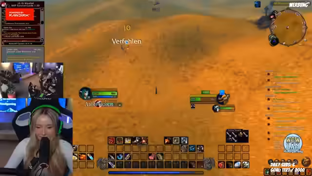 05:05:25Der Streamer spielt einen 'Petit-Pull-Elf' in World of Warcraft, der sich in der Region Westphal befindet und Angst vor den aggressiven Monstern hat. Er ist dabei, seinen Hunter-Pet auszubilden und die Aggro-Strategie zu optimieren, indem er festlegt, dass der Pet zuerst die Anziehungskraft zieht, bevor der Spieler selbst schießt. Gleichzeitig kämpft er mit technischen Problemen, da er seinen Mute-Button nicht findet und dadurch die Umgebungsgeräusche der Frauen im Raum störend wahrnimmt.