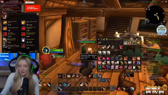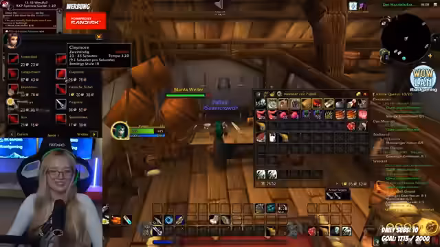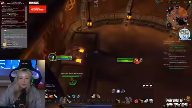 07:28:03Es gibt eine Diskussion über das gemeinsame Spielen und eine Anfrage für eine Mod-Rolle. Der Streamerlevelt einen Hunter-Charakter und sucht nach einem Weg, die Aggro der Gegner zu managen. Es werden Probleme mit dem Questing in gefährlichen Gebieten wie dem Eschenthal angesprochen, wobei besonders die Vorwarnung vor unbeaufsichtigtem Spielen mit niedrigem Level im Horde-Gebiet betont wird. Es folgt die Suche nach Gruppenmitgliedern für den Todesminen-Dungeon, wobei die Schwierigkeiten beim Finden eines passenden Tanks und das unübersichtliche Inventarmanagement thematisiert werden.