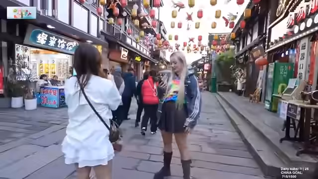 00:08:52Im weiteren Verlauf der Erkundung stößt man auf Geschäfte, die Fächer, Schnickschnack und traditionelle Handwerkskunst anbieten. Die Streamerin zeigt sich besonders interessiert an einem Lippenstifthalter mit integriertem Spiegel für drei Euro, was sie als „sold“ bezeichnet. Es werden auch süße Katzenfiguren und Lesezeichen bewundert. Die Streamerin gesteht, dass sie bereits einen kleinen Handgepäckskoffer gekauft hat, da sie mit wenig Gepäck angereist war und nicht mit so vielen Einkaufsmöglichkeiten gerechnet hatte. Später wird ein Stand mit frittiertem Tofu entdeckt, der mit einem scharfen Dip und Koriander serviert wird. Der Tofu wird als „ultra geil“ und „richtig, richtig lecker“ beschrieben, was die Begeisterung für Streetfood in China unterstreicht. Die Preise werden als sehr günstig empfunden, insbesondere im Vergleich zu Deutschland.