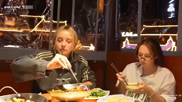 03:12:57Die Streamer sind überglücklich über das Essen, dessen Geruch sie an Poblau erinnert. Es wird erwähnt, dass in Deutschland eine starke Grippewelle herrscht, wogegen sich die Streamer impfen lassen wollen, wie jedes Jahr. Die Dankbarkeit für das Essen und das allgemeine Glücksgefühl werden stark betont, da sie sich in einem Land befinden, aus dem ihr Lieblingsessen stammt. Die Qualität und der Geschmack des Essens, insbesondere die scharfen und sauren Kartoffeln mit Knoblauch, die an chinesische Spezialitäten erinnern, werden gelobt. Es wird der Wunsch geäußert, öfter in solchen chinesischen Restaurants zu essen.