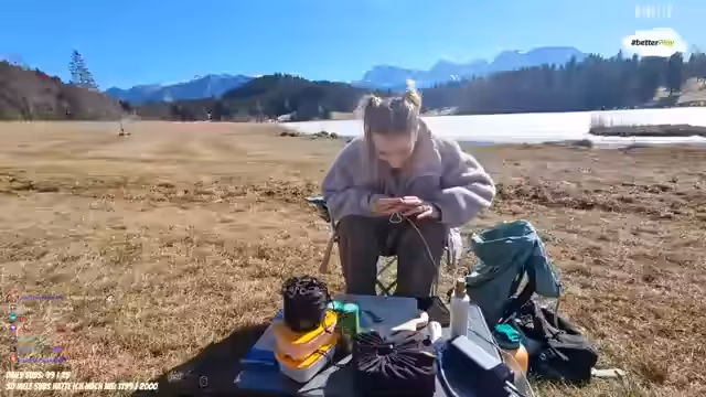 02:15:52Die Streamerin genießt den krassen Ausblick und versucht, die Zugspitze zu zeigen. Sie schwitzt und fragt, ob das Bild asynchron ist. Sie wechselt kurz in die Clipse, um das Problem zu beheben. Sie findet den Ort nicht so schön wie den Alpsee oder die Zugspitze. Sie sucht einen guten Spot zum Kochen und stellt fest, dass die Seen noch zugefroren sind. Sie schneidet schnell ihre Story zusammen und hofft, dass das Licht passt. Sie stellt fest, dass die Umgebung wie in Kanada aussieht und schlägt vor, das in den Titel zu schreiben. Sie lobt ihre Ansteckmikros, weil sie sich dadurch weiter wegsetzen kann und trotzdem gut zu hören ist. Die Streamerin zieht ihre Jacke aus, weil es warm ist. Sie fragt, ob sie ihre Angel dabei hat und stellt fest, dass der Klimawandel real ist. Sie findet, dass der Ort wie ein Desktop-Hintergrund aussieht. Sie hat einen Eschbittkocher dabei und packt ihre Sachen aus dem Auto.