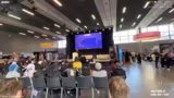 03:51:35Der Streamer nutzt die Messebesucher für ein interaktives Publikumsspiel mit Quizfragen. Die Fragen decken ein breites Spektrum aus der Gaming-Welt ab, von der Entwicklung von Spielen wie Minecraft bis hin zu spezifischen Inhalten aus Serien wie The Witcher. Die Streamerin stellt die Fragen und liest die Antworten des Publikums vor, wobei sie gelegentlich über die korrekten Antworten lachen muss. Das Spiel schafft eine lebendige und interaktive Atmosphäre und dient als lockere Unterhaltung zwischen den Messeständen.