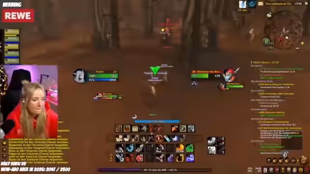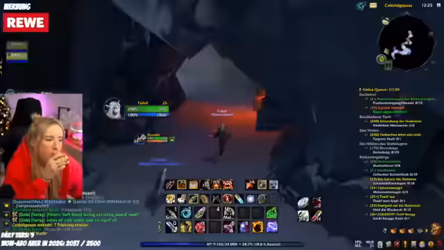 06:31:43Die Gruppe ist kurz vor Beginn des Dungeon-Runs in die Todesminen. Der Streamer sammelt noch letzte Items, wie eine spezielle Quest-Ausrüstung, während die restlichen Teammitglieder auf ihn warten. Es gibt eine kleine Verzögerung, da ein Gruppenmitglied noch eine Quest abgeben muss. Die Stimmung ist fokussiert und zielstrebig, der Start des Dungeons steht unmittelbar bevor.