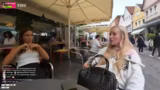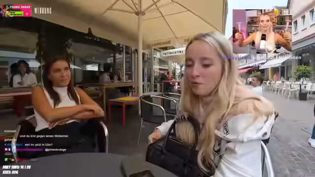 03:48:57Bei der Döner-Verkostung stellt der Streamer zufällig seine ehemalige Mitbewohnerin Mona wieder, die er seit vier Jahren nicht mehr gesehen hat. Das Treffen ist für beide völlig überraschend und emotional. Sie unterhalten sich über ihre jeweiligen Lebenswege: Mona ist in die Schweiz gezogen, während der Streamer beruflich als Twitch-Streamer tätig ist. Die freudige Wiedervereinigung wird von den Chat-Mitgliedern kommentiert und gefeiert.