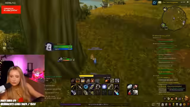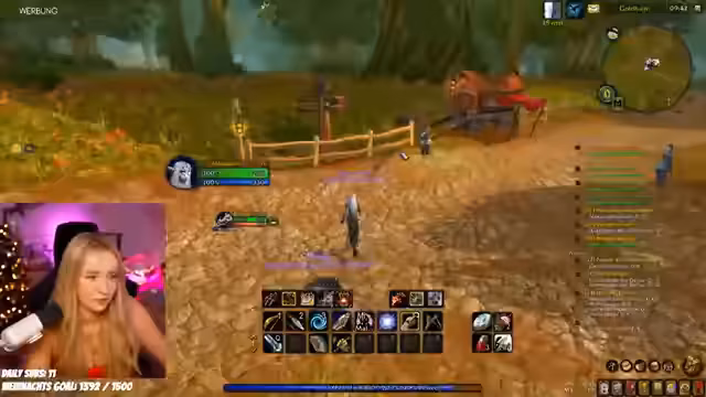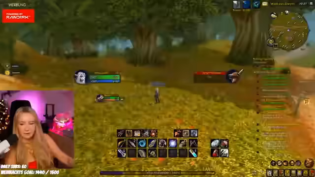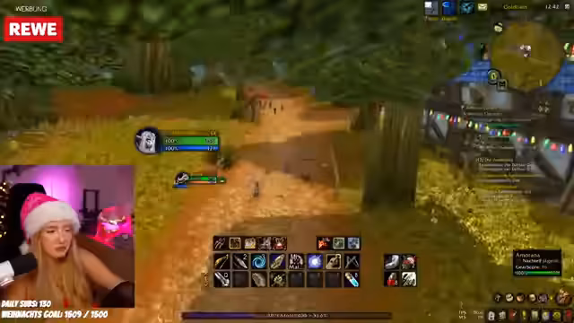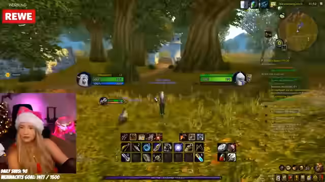 00:40:33Nach einer Phase der Unterhaltung über Weihnachtsgeschenke und Kleidung wechselt die Streamerin den Fokus auf das Gaming. Mit dem Hinweis 'wir gehen in den WoW rein' startet sie eine ausgiebige World-of-Warcraft-Session, während sie ihr rotes Weihnachtskleid trägt. Sie erwähnt spontan Pläne für ein bevorstehendes WoW-LAN-Event und erkundet mit ihrem Charakter auf Level 11 die Spielwelt. Während des Spielens reflektiert sie über die Entspannung durch Gaming an Heiligabend und betont, wie sehr sie diesen Wechsel genießt.