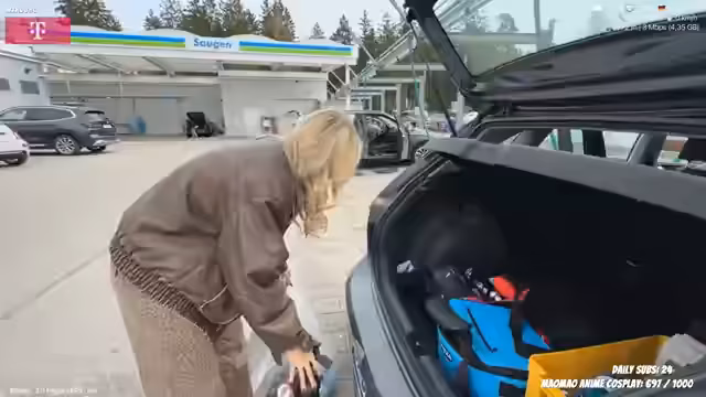 01:30:31Der Stream beginnt mit der Enthüllung eines extrem überfüllten Kofferraums, der diverse Gegenstände des Vorbesitzers sowie persönliche Dinge der Streamerin enthält. Zu den Fundstücken gehören ein Subboard, Sportsachen, Make-up, eine Vergrößerungsbrille und eine Zigarettenabdeckung. Die Gründe für die Lagerung dieser Dinge sind vielfältig: Notwendigkeit für den mobilen Lebensstil, Vergesslichkeit und die Verwendung als temporäre Aufbewahrungsorte für Dinge wie Postpakete oder Kosmetik.