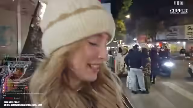 05:08:36Der Streamer erkundet einen belebten Nachtmarkt in Vietnam und sucht gezielt nach Mützen mit Öhrchen. Dabei berichtet er von seinen Erlebnissen, als er fast von einem Rollerfahrer angefahren wird. Er erwähnt auch verschiedene Produkte wie Perlen und Kurkuma-Pillen, ohne jedoch auf deren spezifische Wirkung einzugehen. Seine Suche ist anfangs etwas ziellos, doch mit Hilfe von Google Maps findet er sich zurecht und konzentriert sich auf das Finden eines Buckethats mit Ohren.