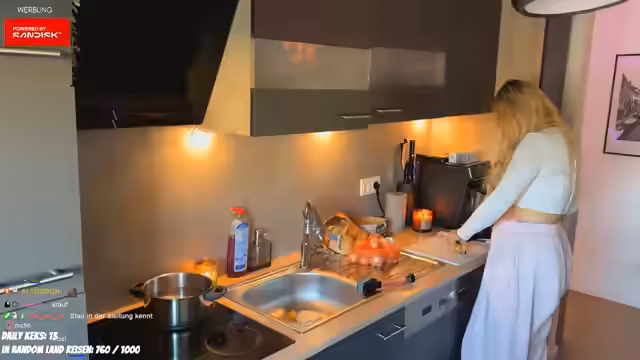 01:30:49Nachdem die medizinischen Themen ausführlich behandelt wurden, wechselt die Streamerin zu ihren Küchenplänen. Sie plant, eine Hähnchen-Kartoffelpfanne mit Putenfleisch, Kartoffeln und vielen Zwiebeln zuzubereiten, möglicherweise ergänzt durch weiteres Gemüse. Sie erwähnt, dass sie das Putenfleisch gestern günstig gerettet hat, bevor es weggeschmissen wurde. Während der Vorbereitungen zündet sie mehrere Kerzen an, um eine gemütliche Atmosphäre zu schaffen, da es draußen kalt ist. Sie spricht über ihre Vorliebe für den Duft von Apple Cinnamon Crisp und einem herben Männerparfüm. Die Streamerin teilt auch ihre Gedanken über das Kochen im Allgemeinen und ihre Abneigung gegen das Backen, da es präzises Einhalten von Rezepten erfordert, während sie beim Kochen gerne freestylt.