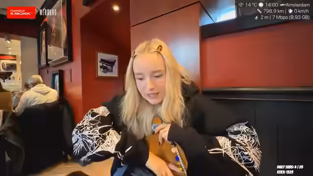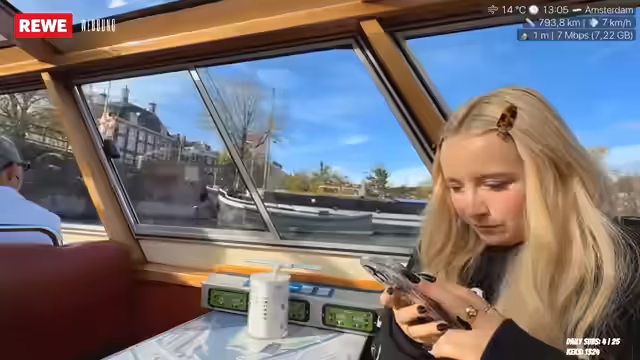 02:53:41Der Streamer teilt seine Freude über die Schönheit Amsterdams und die positive Stimmung, die er beim Erkunden der Stadt empfindet. Trotz des schönen Wetters fehlt ihm seine Sonnenbrille, die er bedauerlicherweise im Auto gelassen hat. Währenddessen äußert er starken Hunger und den Wunsch nach einem Frühstück, da er vor dem Stream nichts gegessen hat. Er erwähnt eine lustige erste Nachricht im Chat, die sich um Pizza dreht, und zeigt sich amüsiert darüber. Eine Zuschauerin namens Nina hat einen coolen Ort vorgeschlagen, der sich jedoch als vorübergehend geschlossen herausstellt, was die Essenssuche erschwert. Er zeigt seinen Hoodie mit einem Drachenskelett-Print und plant, später in einem Laden wie Bershka oder Pull&Bear vorbeizuschauen. Die Diskussion dreht sich auch um die Hausboote in Amsterdam, deren Nutzung als Wohnraum oder Ferienunterkunft, und er erhält ein Kompliment für sein Aussehen. Er erfährt, dass Google Maps einen vorgeschlagenen Ort als geschlossen anzeigt und fragt sich nach seiner eigenen Höhe in Bezug auf den Meeresspiegel. Die Suche nach Essen bleibt ein zentrales Thema, und er überlegt, sich einfach am Kanal niederzulassen.