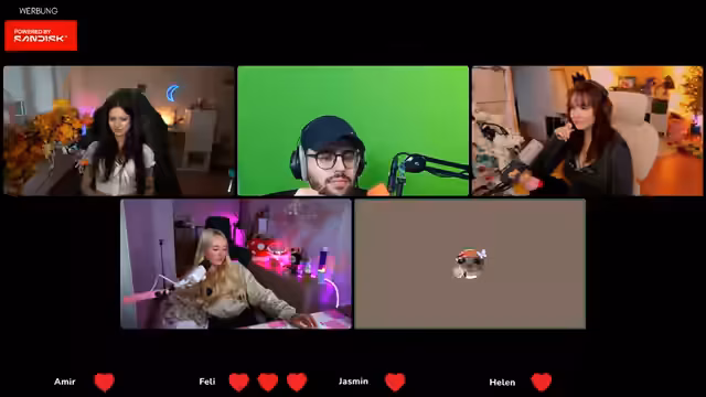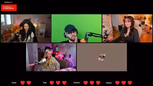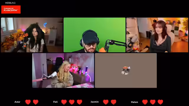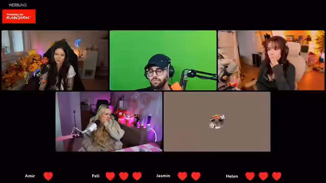 01:59:50Der Streamer und ihre Gäste warten auf Amir, den einzigen Mann in der Runde des Quiz 'Der Dümmste fliegt'. Es wird erklärt, dass jeder Teilnehmer drei Leben hat, um das Spiel entspannter zu gestalten, da sie nur zu viert sind. Die Teilnehmer schalten ihre virtuellen Kameras an, um die Übertragung zu vereinfachen. Nach einer kurzen technischen Anpassung und der Einrichtung eines gemeinsamen Chats, um die Geburtstagsglückwünsche für Feli zu ermöglichen, wird das Regelwerk des Quiz erläutert. Es werden nacheinander vier Fragen pro Person gestellt, und nach jeder Runde wird diskutiert, wer ein Leben verlieren soll. Amir erklärt sich freiwillig bereit, als Erster zu beginnen, und die Reihenfolge wird im Uhrzeigersinn festgelegt. Es folgt eine kurze Vorstellungsrunde der Teilnehmer für den Chat.