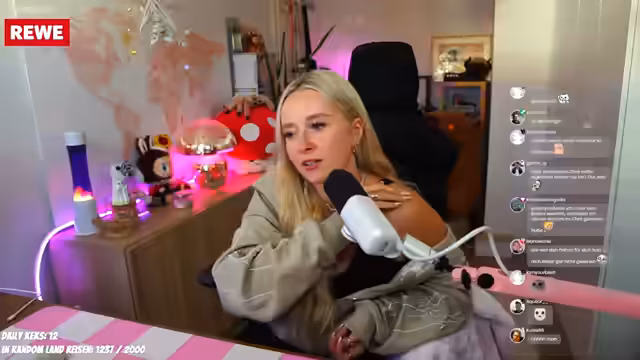 00:21:41Die Streamerin teilt mit, dass sie frisches Botox in ihre Stirn bekommen hat. Sie erklärt, dass die Behandlung in erster Linie medizinische Gründe hat, da sie unter starken Druckkopfschmerzen litt und ihren Streamstart oft verschieben musste. Das Botox hilft, die Stirnmuskulatur zu entspannen, die sie unbewusst anspannt, wenn sie gestresst ist. Ein positiver Nebeneffekt ist, dass die Falten gemindert werden. Sie erwähnt jedoch, dass sie ihren Stress nun auf die Kaumuskeln verlagert, was die Ärztin ebenfalls bemerkt hat. Ein weiterer unerwarteter, aber willkommener Effekt des Botox ist, dass sie auf der Stirn nicht mehr so stark schwitzt, was ihre Ärztin bestätigt hat. Dies ist für sie eine große Erleichterung, da sie früher extrem auf der Stirn und dem Rücken schwitzte.