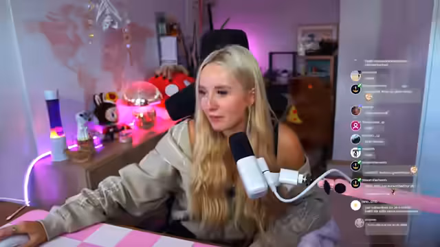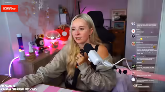 00:34:30Es wird bekannt gegeben, dass die Streamerin übermorgen zur Frankfurter Buchmesse fahren wird und möglicherweise auch am Samstag von dort streamt. Für Sonntag wird überlegt, ob ein Stream vom Kürbisfest in Kaltenberg stattfinden soll. Sie erwähnt auch, dass sie nächste Woche nach Köln fahren wird. Neben den Reiseplänen spricht sie über technische Probleme mit ihrem Mikrofon-Routing. Es kommt vor, dass Zuschauer ihre eigene Stimme leicht abgehackt in ihrem Audio hören, was für sie keinen Sinn ergibt, da sie der Meinung ist, dass ein Routingfehler entweder ganz oder gar nicht auftreten sollte. Sie äußert ihre Abneigung gegenüber Tontechnik, da sie es als unbelohnt und frustrierend empfindet, ständig Einstellungen überprüfen zu müssen und sich Dinge nicht merken zu können. Sie versucht, das Problem während des Streams zu beheben, indem sie einen Filter deaktiviert.