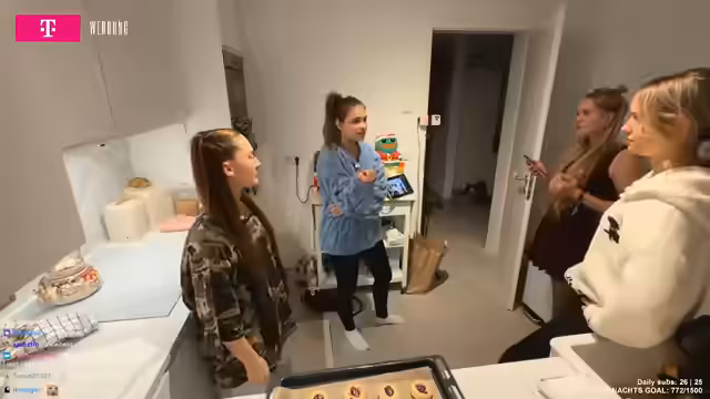 00:46:02Die Streamerin und ihre Gäste beginnen mit einem gemeinsamen Backprojekt, speziell Plätzchen. Dabei unterhalten sie sich über verschiedene Themen wie ihre Größe, Haare und Frisuren. Deutlich wird die Debatte um die Technik: Während die Streamerin derzeit mit einem Samsung-Handy streamt, schwärmt sie von den Möglichkeiten eines neuen iPhones 16 für IRL-Streams, ist aber durch den Kauf eines teuren PCs und die allgemeine Kostenentwicklung überfordert.