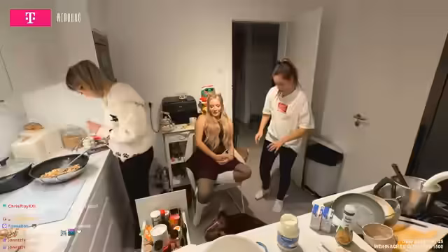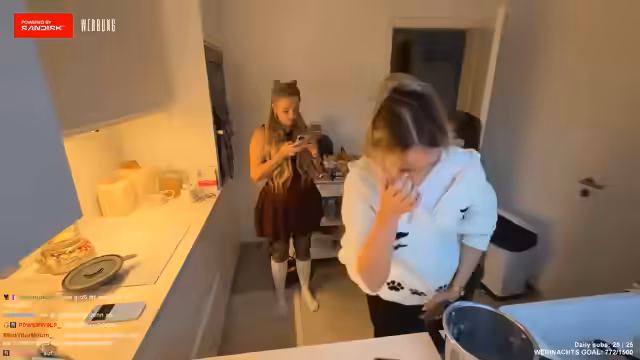 02:24:53Hier konzentriert sich der Stream vollständig auf die Herstellung der Engelsaugen. Die Anweisungen sind klar: Teig zu Kugeln formen, mit einem Löffel eine Mulde hineinbohren und Marmelade füllen. Es kommt jedoch zu technischen Problemen, die die Streamer unterbrechen. Ihre Lautsprecherboxen wollen sich nicht mit der Musik verbinden, was für Frustration sorgt. Gleichzeitig tauchen immer wieder neue Themen auf, wie das Singen von Weihnachtsliedern oder das Betrachten von Katzen im Hintergrund, was den Prozess unterbricht, aber die lockere, ungezwungene Atmosphäre aufrechterhält.
