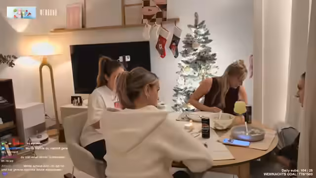 01:50:35Die Stimmung ist entspannt, während gemeinsam Plätzchen gebacken und Outfits bewundert werden. Dabei kommt die Rede auf aktuelle Buchreihen wie 'Dark Nomina' und 'Silber Elite', wobei die Vorlieben für Genres wie Fantasy und romantische Geschichten geteilt werden. Die Wertschätzung für die weibliche Freundesgruppe der Streamerinnen wird ausgedrückt, da diese einen besonderen Zusammenhalt und Verständnis bieten, den Freundschaften zu Männern nicht immer abdecken können.