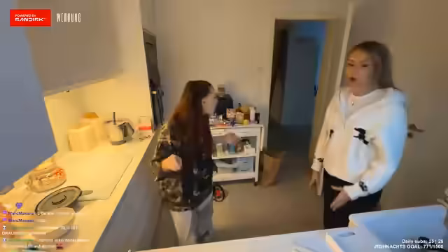 02:59:51Es kommt zu einem ausführlichen Größenvergleich zwischen den Streamerinnen. Annika und Maxi messen ihre Körpergröße und sind sich uneinig, wer größer ist. Annika behauptet, größer zu sein, während Maxi sich als kleiner beschreibt. Maxi gibt an, 1,75 m groß zu sein, wobei sie ihre genaue Größe nicht genau kennt. Die Gruppe beschließt schließlich, sie seien gleich groß und witzeln über die Kameraeinstellung, die Maxi größer erscheinen lässt. Es werden auch ihre jeweiligen Erfahrungen bezüglich ihrer Körpergröße im Chat erwähnt.