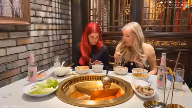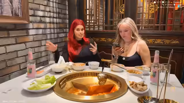 00:28:52Im Restaurant angekommen, beginnen die beiden mit dem gemeinsamen Essen. minuself zeigt Anna, wie man Hot-Pot zubereitet und isst, und stellt verschiedene Dips her. Sie diskutieren Ernährungsgewohnheiten, wobei Anna angibt, kaum Kohlenhydrate zu essen. Die Streamerin interagiert kontinuierlich mit dem Chat, beantwortet Fragen und nimmt Bestellungen entgegen, wobei sie die Kosten für das Essen als fair für zwei Personen betrachtet.