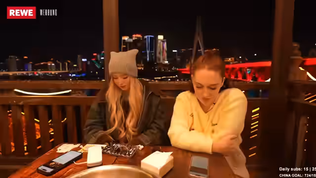 02:35:41Die Streamerinnen sind fasziniert von einem „Emily Erdbeerkleid“ und anderen einzigartigen Kleidungsstücken in einem Geschäft. Sie scherzen über die hohen Ausgaben und die Kreditkarte der Mutter. Anschließend begeben sie sich auf eine Brücke, die eine atemberaubende Aussicht auf die Stadt bietet. Die Architektur und die leuchtenden Reklamen erinnern sie an eine „Cyberpunk City“ oder ein „Studio Ghibli“-Setting. Trotz der beeindruckenden Kulisse haben sie mit technischen Problemen zu kämpfen, da das Internet auf der Brücke nicht stabil ist. Yannick, der Organisator der Reise, hatte zuvor eine Genehmigung vom chinesischen Konsulat eingeholt, um live streamen zu dürfen, was die Streamerinnen als besonders cool empfinden. Sie planen, Hot Pot mit Blick auf die Stadt zu essen, um die Aussicht zu genießen und Yannick eine Pause zu gönnen. Die vielen Menschen auf der Brücke und die lebhafte Atmosphäre tragen zum besonderen Erlebnis bei, obwohl die Internetverbindung weiterhin eine Herausforderung darstellt. Sie sind begeistert von der Möglichkeit, ihren Zuschauern diese einzigartigen Eindrücke live zu präsentieren und die Schönheit der Stadt zu teilen.