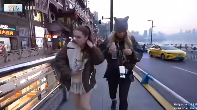 Die Streamerinnen verbringen mehrere Stunden in Chongqing, einer Stadt, die für ihre Cyberpunk-Ästhetik und nächtliche Beleuchtung bekannt ist. Sie erkunden Food-Stände, besuchen einen Tempel und planen ein Fotoshooting in traditioneller Kleidung. Die Vielfalt der Street-Food-Angebote und die beeindruckende Architektur prägen ihre Reise. Die Kommunikation in China erweist sich als Herausforderung, wird aber mit Sprach-Apps gemeistert. Sie sind begeistert von der Sauberkeit und den günstigen Preisen.