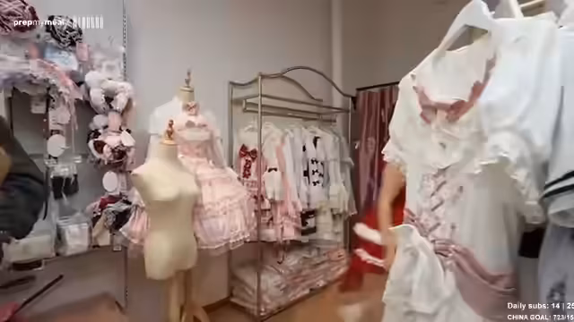 01:54:30Die Streamerin und ihre Begleitung probieren verschiedene Lolita-Kleider an und sind begeistert. Sie machen Fotos und überlegen, welche Kleider sie kaufen möchten. Die Streamerin ist besonders angetan von einem Petticoat, den sie unter ihren Röcken tragen möchte, um ihnen mehr Volumen zu verleihen und sich sicherer zu fühlen. Sie findet einen Petticoat für etwa 99 Yuan (ca. 85 Euro) und beschließt, ihn zu kaufen. Sie ist überrascht von den vergleichsweise niedrigen Preisen für die Kleidung. Die Streamerin und ihre Begleitung genießen die Anprobe und die Möglichkeit, in eine andere Modewelt einzutauchen. Sie planen, die gekauften Outfits für einen speziellen Stream zu Hause zu tragen. Die Streamerin ist fasziniert von den verschiedenen Stilen und Details der Kleider, die von Alice im Wunderland bis zu Cyberpunk-Vibes reichen.