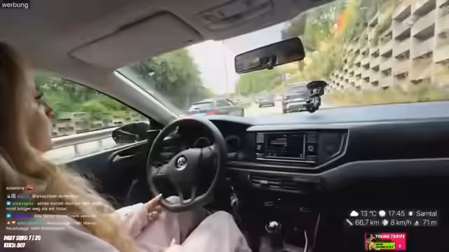 07:12:22Während der Fahrt teilt die Person persönliche Anekdoten. So erzählt sie von einem frustrierenden Erlebnis bei der Führerscheinprüfung, bei dem sie an einem grünen Pfeil gescheitert ist. Auch ihre Vorliebe für Golf im Vergleich zu Minigolf wird thematisiert. Zudem erwähnt sie ihr abgebrochenes Medizinstudium und spricht über ihre derzeitige Lebenssituation, einschließlich ihrer Katze und der beruflichen Pläne.