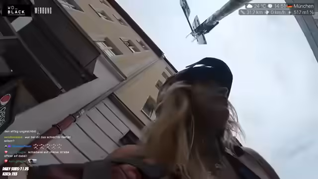 01:15:17Während der Fahrt kommt es zu hitzigen Diskussionen im Chat über die genaue Definition eines Gravel-Bikes. Die Streamerin beschreibt es als eine Mischung aus Rennrad und Mountainbike, was zu anhaltenden, teils toxischen Debatten mit Zuschauern führt, die sie beinahe in den Wahnsinn treibt. Sie beobachtet während der Fahrt auch verschiedene Alltagsszenen, wie aggressive Autofahrer, Fußgänger, die über eine rote Ampel laufen, und macht sich Gedanken über den Verlust ihres eigenen Schlüssels und den Kauf von Sonnencreme in einem Rossmann-Geschäft.