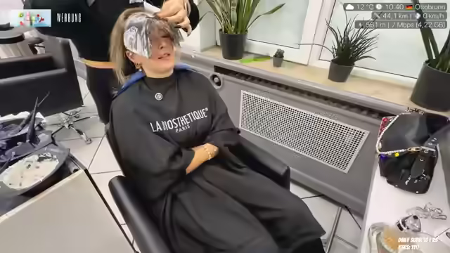 02:55:57Die Erlaubnis zum Streamen beim Friseur wurde eingeholt und die Friseurin war einverstanden, da sie Twitch kennt und manchmal zusieht. Die Friseurin wollte sich anfangs nicht zeigen, wurde aber durch positive Kommentare im Chat motiviert. Es wird erklärt, dass der Friseurtermin eine längere Wartezeit beinhaltet, die mit verschiedenen Aktivitäten überbrückt wird. Die Streamerin war panisch, als sie versehentlich den Stream beendet hat und bereute es sofort. Sie spricht über ihre Haarroutine, einschließlich Färben, Auswaschen und Pflege. Sie erwähnt, dass sie überlegt, ob ihre Ohrringe zu viel sind. Der Friseurbesuch ist für sie ein Luxus, auf den sie sich freut und für den sie spart. Sie spricht über ihre Erfahrungen mit Kapselhotels und empfiehlt diese nur bedingt für unruhige Schläfer.