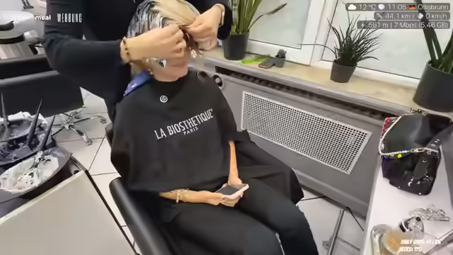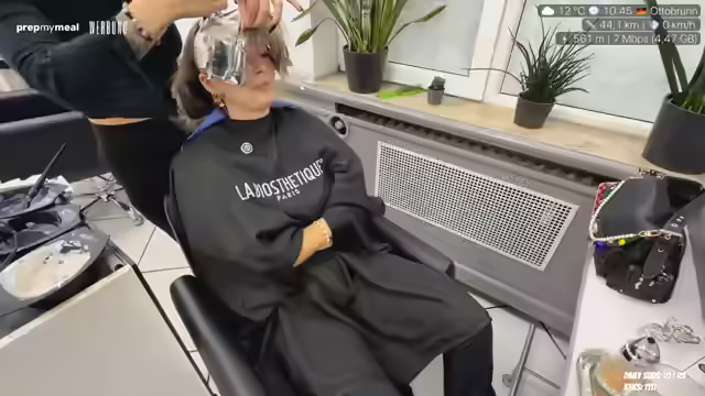 01:01:25Der Streamer befindet sich beim Friseur Lara und bespricht die gewünschte Haarfarbe und den Schnitt. Es wird über frühere Friseurerfahrungen gesprochen, insbesondere über eine Friseurin in der Heimat, die die Haare immer nur heller gefärbt hat. Lara wird als Empfehlung von Alisa Christina erwähnt, und der Streamer äußert sich sehr zufrieden mit ihrer Arbeit. Der Besuch dient der Vorbereitung auf Halloween, da viele Partys anstehen. Es wird über den Naturton der Haare gesprochen und die Community wird nach ihrer Meinung gefragt, ob die Extensions im Zug eingesetzt werden sollen. Die Tasche wird für die Polaris erwähnt. Es wird besprochen, dass die Strähnchen bei einer anderen Kundin fertig gemacht werden und es dann losgeht. Es wird über die Angst vor einer langen Zugfahrt gesprochen und dass der Flug vergessen wurde zu buchen. Es wird überlegt, ob eine Brotzeit mitgenommen werden soll.