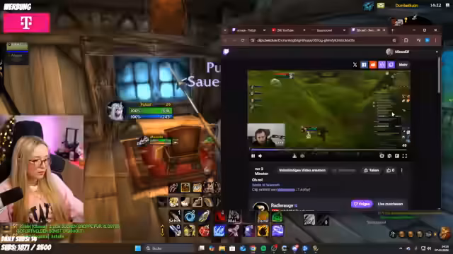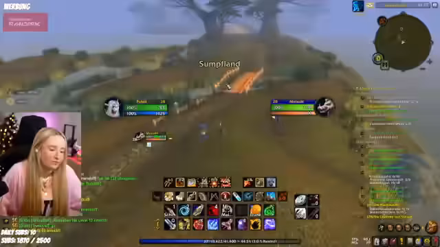 00:39:54Nach diversen anderen Themen wechselt der Stream zum Gameplay in World of Warcraft. Der Streamer ist Level 27 und möchte gemeinsam mit dem Chat und anderen Spielern, wie 'Maus' und 'Pizzi Chris', weiter leveln und eventuell ein Dungeon (Verlies) laufen. Es werden Pläne für das gemeinsame Zocken geschmiedet und der Discord erwähnt, um die Koordination zu erleichtern.