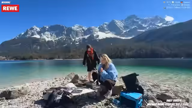 05:26:21Der Stream beginnt am Alpsee, einem als schönsten Ort Deutschlands bezeichneten Spot. Die Streamerin unterhält sich mit dem Chat über die Anreise und zeigt den Rucksack mit dem gepackten Equipment, darunter eine Kühltasche. Sie erwähnt, dass sie und Jasmin bereits einen längeren Weg zurückgelegt haben und das Setup am See vorbereiten müssen. Ein kurzer technischer Zwischenfall mit einem Handtuch wird erwähnt, aber das Hauptziel ist das Paddeln auf dem ruhigen See. Die Planung für weitere Streams und die Vorfreude auf das Outdoor-Kochen sind präsent.