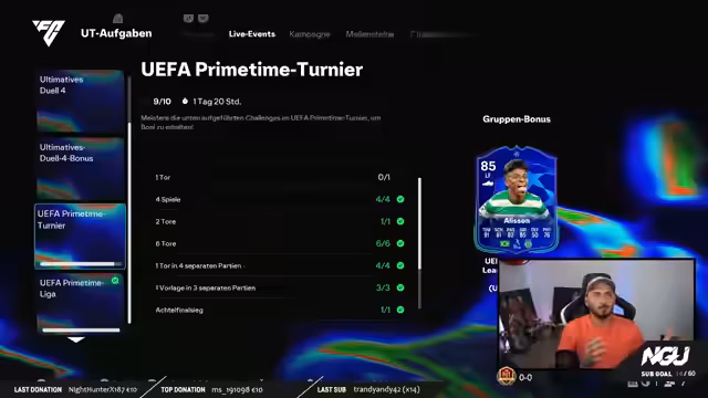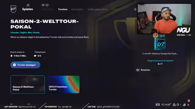 00:10:23Der Streamer begrüßt seine Community und kündigt an, dass der heutige Stream nicht wie üblich Rivals-lastig sein wird. Stattdessen liegt der Fokus auf dem Grinden des Gauntlet Cups und des Primetime Cups. Ziel ist es, in beiden Cups so weit wie möglich zu kommen und idealerweise mindestens einen davon abzuschließen. Da es zwei Cups pro Account gibt, sind insgesamt vier Cups zu bewältigen. Die Cups werden als sinnvoller im Vergleich zu Rivals betrachtet, da sie bessere Belohnungen bieten. Zudem wird der kürzlich veröffentlichte Patch getestet, obwohl die Erwartungen an größere Änderungen, insbesondere in der Defensive, gering sind. Ein 12-Stunden-Stream ist für Freitag ab 18 Uhr angekündigt.