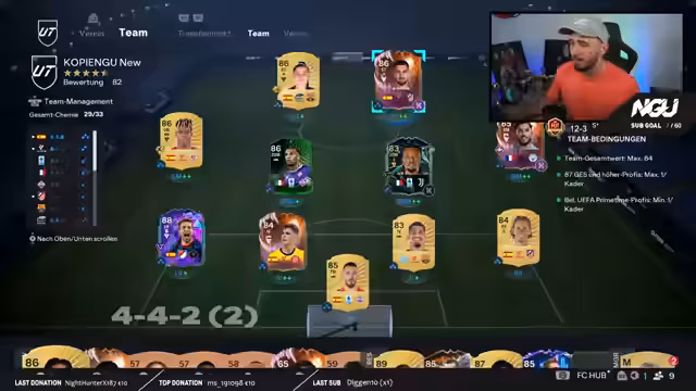 01:35:27Nachdem die ersten beiden Gauntlet-Teams aufgestellt sind, bereitet sich der Streamer auf die Erstellung des dritten Squads vor und kündigt Teambewertungen an, sobald das Subgoal erreicht ist. Er betont, dass dies eine gute Gelegenheit für Zuschauer ist, ihre Teams bewerten zu lassen, insbesondere im Hinblick auf den kommenden Freitag, an dem ein 12-stündiger Stream mit umfangreichen Teambewertungen geplant ist. Während er das dritte Team zusammenstellt, experimentiert er mit verschiedenen Spielern wie Haaland, Benzema, Theo und Guardiol, um eine ausgewogene und effektive Mannschaft zu finden. Er äußert sich kritisch über die Qualität einiger Spieler in seinem Kader, die er als 'Müll' bezeichnet, und sucht nach passenden Alternativen, um die Chemie und Stärke des Teams zu optimieren. Parallel dazu gibt er einen Ausblick auf den Freitag, an dem ein neues Event, ein großes Pack Opening und die Weekend League anstehen. Ein besonderes Highlight ist der Sonntag, an dem er den zweiten Community Cup des DFB E-Pokals hosten wird, bei dem die Top 16 um die Qualifikation für die Playoffs kämpfen.