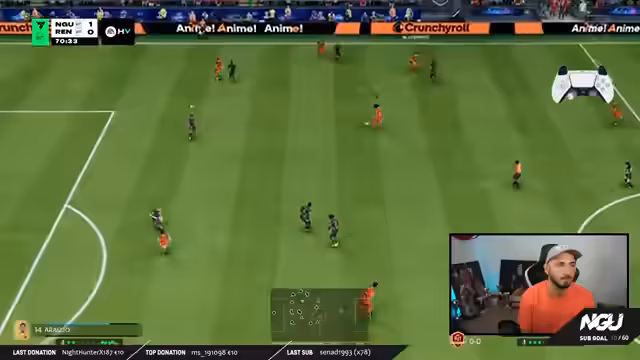 01:02:30Der Streamer feiert einen Erfolg, als er eine lange geplante Player-Lock-Strategie erfolgreich umsetzen kann. Er dribbelt mit einem Spieler, spielt einen X-Pass, zieht sich dann in eine Lücke und schließt mit einem Dreieckpass ab. Dieses Erlebnis bestätigt ihn in seinem Bestreben, den Player Lock zu meistern, um dem eintönigen Gameplay entgegenzuwirken und seinen eigenen Spielstil zu pflegen. Er betont, dass er sich nicht der aktuellen Meta beugen möchte, die auf Konter und Dreieckpässe fixiert ist. Trotz einiger Fehler und 'Fettfinger'-Momente ist er entschlossen, weiter zu üben und seine Fähigkeiten zu verbessern. Der Spieler Baena wird dabei als besonders effektiv für Dribblings hervorgehoben.