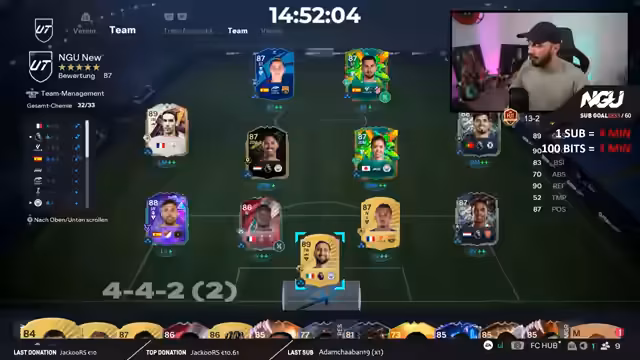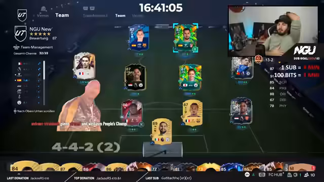 01:38:42Es folgt eine Reflexion über die Bedeutung von Play-Styles in FC, wobei betont wird, dass gute Spieler mit schlechten Play-Styles oft unbrauchbar sind. Nachdem der Streamer seinen Sohn zu Bett gebracht hat, kündigt er den Start der Weekend League an, um mit dem geplanten Squad zu spielen. Dies markiert den Übergang von der Planung zur aktiven Teilnahme am Wettbewerb.