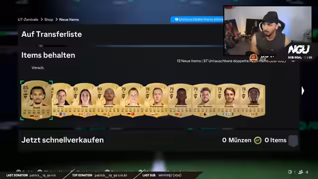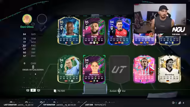01:40:05Der Streamer beginnt mit dem Öffnen von 50er Packs und nutzt den Tipp, Assistenten auf die neuesten zu setzen, um effizienter vorgehen zu können. Er ist begeistert von dieser Strategie, da sie ihm viel Zeit spart und ihm ermöglicht, einen größeren Vorrat an Spielern aufzubauen. Der Streamer kommentiert seine Züge enthusiastisch und geniezt den Prozess des Pack-Öffnens und des Sammlns von Spielern für sein Team.