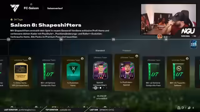 00:42:33Der Streamer plant mehrere Grind-Aktionen. Er möchte den Premium Pass auf beiden Accounts frühzeitig erwerben und eine neue Monster-Evolution für Dzeko vorbereiten. Er kündigt ein Pack Opening für den nächsten Tag an, bei dem er Best of Tots Pack Öffnen wird. Sein unmittelbares Ziel ist es, zehn Siege in verschiedenen Cups zu erzielen, um spezielle Packs zu erhalten. Dazu gehören fünf Siege im Saudi Cup und fünf im MLS Cup, wobei die Teamzusammensetzung für die Turniere festgelegt wird.