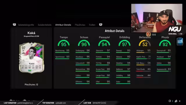 00:38:21Ein historischer Moment wird im Stream erreicht: die offizielle Vorstellung der ersten Karte der Geschichte mit fünf Playstyle-Plus. Es handelt sich um die Karte von Kaka (KK), die die Anzahl der Playstyle-Plus von vier auf fünf anhebt. Diese Entwicklung hebt das Metaspiel auf ein neues Niveau und ermöglicht ungeahnte Spielermanipulationen. KKs Karte hat beeindruckende Werte und kann auf der Stürmerposition gespielt werden. Der Streamer äußert seine Begeisterung für diese extrem starke und seltene Karte.