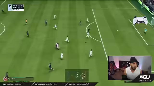 02:44:06Totti wird als sehr gut und beweglich gelobt, besonders sein R1-Dribbling und sein Abschluss. Es wird bestätigt, dass Totti zwar keinen angeschnittenen Schuss und keinen Flachschuss hat, die Schüsse aber trotzdem reingehen. Es wird gelobt, dass EA die Playstyles in diesem Jahr gut hinbekommen hat und Spieler mit starken Werten auch ohne Playstyles gut performen. Es wird betont, dass auch Flachschüsse ohne Playstyle reingehen. Es wird sich bei den Zuschauern für die Subs auf Twitch bedankt und auf die Challenge hingewiesen: Bei 150 Subs gibt es einen 12-Stunden-Stream. Es wird das Aufstiegsspiel in Division 4 angekündigt und betont, dass es lange gedauert hat, bis ein Weg gefunden wurde, kompakt zu stehen und offensiv zu agieren. Es wird die Rorte-Taktik als brutal bezeichnet. Es wird sich über einen Fehlpass geärgert, der zu einem Gegentor führt. Es wird betont, wie wichtig es ist, defensiv kompakt zu stehen, da offensive Stärke bereits vorhanden ist. Es wird sich darüber geärgert, dass ein Schuss nicht abgegeben wurde. Es wird festgestellt, dass der Gegner auch ein Aufstiegsspiel hat.
