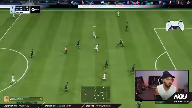 02:53:20Nach einer Spielphase äußert sich der Streamer zu notwendigen taktischen Anpassungen, insbesondere in Bezug auf die Formation und Konterstrategien. Er plant, die Taktiken zu verfeinern und die Tiefe auf 60 einzustellen, um das Offensivspiel besser zu gestalten. Außerdem bedankt er sich bei den Zuschauern und kündigt an, fünfmal die Woche zu streamen, einschließlich eines Sonntagsstreams um 21 Uhr, bei dem er mit einem 'Road to Glory'-Projekt auf einem Zweitaccount beginnen wird. Er betont die Bedeutung von L1-Dribblings in 1-gegen-1-Situationen und analysiert seine Ungeduld im Spiel sowie die Gefährlichkeit von Ecken.