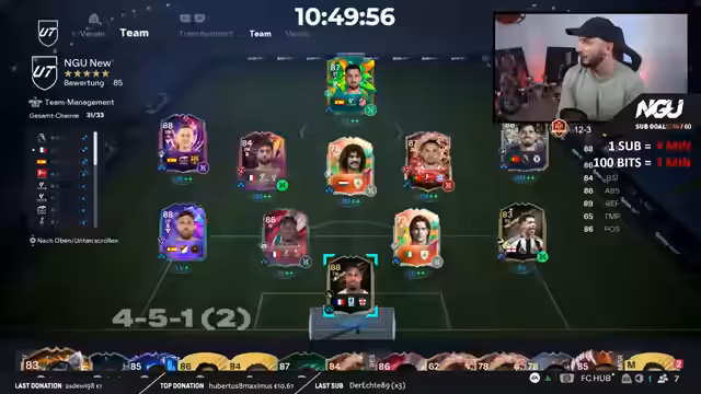 02:48:08Es wird über einen schlechten Pass und die unfaire Belohnung eines Mitspielers gelästert, der als 'Volltrottel' und 'Pain in the Ass' beschrieben wird. Anschließend wechselt die Unterhaltung zur Spielstrategie: Es wird Tiki Taka im Spielaufbau und schnelle Abschlüsse im Strafraum diskutiert. Zudem wird deutlich, wie wichtig Pass-Styles wie Tiki Taka für den Erfolg sind, besonders unter Berücksichtigung des bevorstehenden Team of the Year Events.