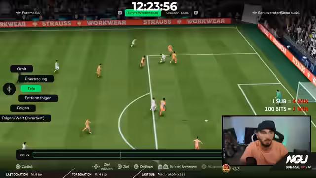 01:23:32Es wird eine Diskussion über die Torwart-Bewegung und die Effektivität von Schüssen geführt. Der Streamer stimmt zu, dass Torhüter zu oft am Boden liegen, bevor der Schuss abgefeuert wird, und dass gut durchkombinierte Angriffe belohnt werden sollten. Er erklärt, dass Finesse Plus-Schüsse aus bestimmten Positionen sehr effektiv sind, aber auch durch gute Verteidigung verhindert werden können. Der Streamer kritisiert Gegner im Flash Cup, die sich absichtlich Eigentore schießen oder nicht ernsthaft spielen, da es in diesem Cup hauptsächlich um Evolutionen geht und nicht um ernsthaften Wettbewerb. Er erwähnt die Idee eines Glücksrads für Giveaways, Teambewertungen oder Follower-Spiele, um mehr Abwechslung in den Stream zu bringen. Der Streamer erklärt auch, dass der Subathon-Timer den gesamten Monat zählt und nicht nur für den aktuellen Stream, was eine Besonderheit darstellt.