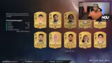 01:32:27Der Streamer beginnt mit einem Pack Opening und zieht Nico Williams, einen spielstarken Flügelspieler mit beeindruckenden Statistiken (25 Spiele, 23 Tore, 11 Vorlagen). Er kann den Spieler tradable für 100k verkaufen und zeigt sich begeistert vom Pack-Luck. Auch andere wertvolle Spieler werden gezogen, darunter ein 87er Spieler, der als gutes Futter für SPCs dient. Der Streamer kommentiert die Gewinne positiv und zeigt sich zufrieden mit den gezogenen Spielern.