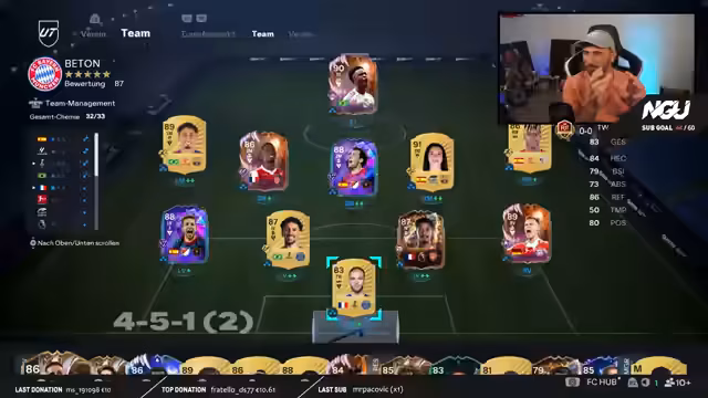 05:14:18Der Streamer testet verschiedene Karten, darunter die Sariegi-Karte, und bewertet ihre Stärken und Schwächen. Er plant, seine Mannschaft mit neuen Spielern wie Puteas zu verbessern, und erwägt, Busquets durch Alba auf einem seiner Konten zu ersetzen. Er diskutiert auch seine Strategien für die bevorstehende Weekend League und plant, sowohl mit seinem Hauptteam als auch mit seinem RTG-Team anzutreten. Er zeigt seine aktive Taktik und erklärt, wie er sie je nach Gameplay-Situation anpassen wird.