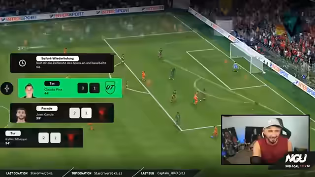 07:44:40Ein zentrales Ereignis war ein Rivals-Spiel gegen einen Zuschauer mit einem als sehr stark geltenden Team. Der Streamer interagierte intensiv mit dem Zuschauer Michael, gab ihm Spielertipps wie das Zurücklaufen und versuchte, ein Spiel zusammen zu gewinnen. Es handelte sich um ein 2-2-Match, das durch das Engagement beider Seiten sehr umkämpft und emotional verlief, was die Zuschauer begeisterte.