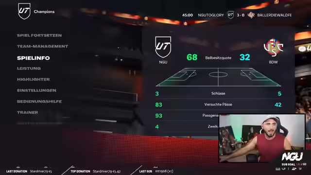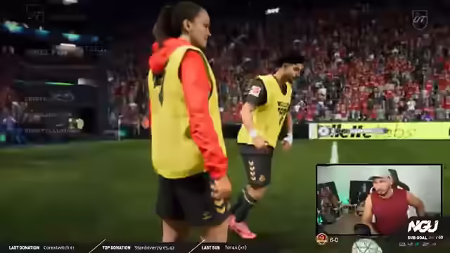 10:30:16Ein Zuschauer wird im Rivals-Modus willkommen geheißen, und es wird angekündigt, dass mit der 4-4-2-Formation gespielt wird. Der Streamer überlegt, ob er bald Paraluejo und Pajor in den Sturm einsetzen soll. Es wird ein Gegner gefunden, und der Streamer betont, dass es sich wahrscheinlich wieder um zwei Spieler handelt. Der Zuschauer spielt normalerweise in Division 6, wird aber nun Division 3 erleben. Der Streamer gibt taktische Anweisungen, wie man defensiv spielt: zurücklaufen und niemals den Innenverteidiger anwählen. Er lobt den Zuschauer für seine gute Defensivarbeit und Ballverteilung. Trotz einer schlechten Verbindung wird das erste Tor durch Pina erzielt, was zeigt, dass Divisionen im 2-on-2 nicht viel bedeuten. Der Streamer lobt die Defensivstrategie und betont, wie wichtig es ist, hinten sicher zu stehen. Er erklärt, dass die Verzweiflungsschüsse des Gegners aus der Ferne ein Zeichen dafür sind, dass die Defensivstrategie funktioniert. Abschließend wird ein Gegentor in der 45. Minute analysiert und kritisiert, da es als geskriptet und unfair empfunden wird.