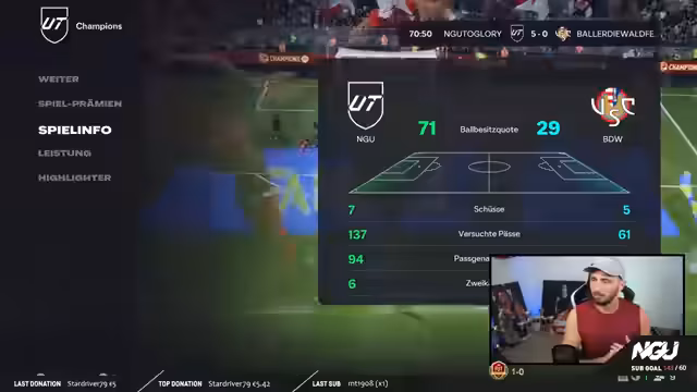 07:52:28Nach dem knappen Sieg im Community-Game analysierte der Streamer die Spielzüge und betonte die Wichtigkeit bestimmter Aktionen, wie des Drag-Backs im Strafraum. Er gab den Zuschauern im Chat taktische Ratschläge, wie man unter Druck ruhig bleibt und den Ball durch sicheres Passspiel in sichere Bereiche spielt. Zudem wurde angekündigt, dass ein neues Tutorial-Video zum Thema Offensive um 14 Uhr online gestellt werden soll, um diese Taktiken zu vertiefen.
