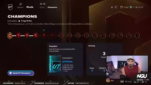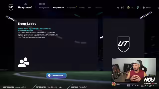 10:21:53Der Streamer möchte mit Zuschauern 2-on-2 Rivals spielen und erklärt, wie man auf Twitch mitmachen kann. Er zeigt seinen Taktik-Code und ermutigt die Zuschauer, ihm auf Twitch zu folgen und 'Ausrufezeichen NGU' einzugeben, um ausgelost zu werden. Ein Zuschauer namens Betze Teufel 92 wird ausgelost und aufgefordert, seine ID zu schicken. Der Streamer erklärt, wie man ihn im Spiel hinzufügt und zu einem Rivals-Spiel einlädt. Betze Teufel 92 spielt in Division 6, was für den Streamer, der in Division 3 spielt, interessant ist. Es wird auf ein kommendes YouTube-Video hingewiesen, das verspricht, die Torausbeute zu verbessern, und die Zuschauer werden ermutigt, das Video zu liken, zu kommentieren und die neue 'Hype'-Funktion zu nutzen, um die Reichweite des Videos zu erhöhen. Der Streamer erklärt, wie die Hype-Funktion funktioniert und wie sie dazu beitragen kann, dass das Video mehr Aufmerksamkeit erhält. Abschließend wird ein Zuschauer eingeladen, mit dem Streamer zu spielen, da es technische Probleme gibt.