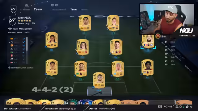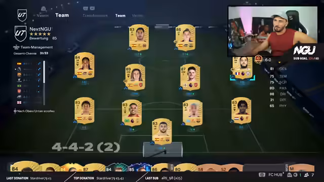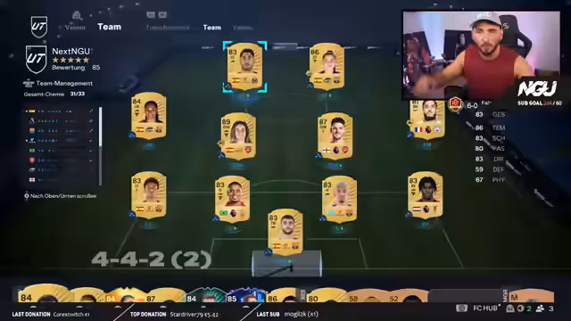 09:12:42Der Streamer gibt Einblicke in seinen festen Stream-Zeitplan, der von Montag bis Sonntag stattfindet, wobei freitags oft 12-Stunden-Special-Streams angesetzt werden. Er spricht über verschiedene Inhalte, die er anbietet, darunter Teambewertungen und Community-Spiele. Im Kontext von Teambewertungen diskutiert er die aktuelle Meta im Spiel, wobei er feststellt, dass Spieler wie Mbappé nicht als übermächtig gelten und die Frauen-Karten in diesem Jahr besonders stark sind.